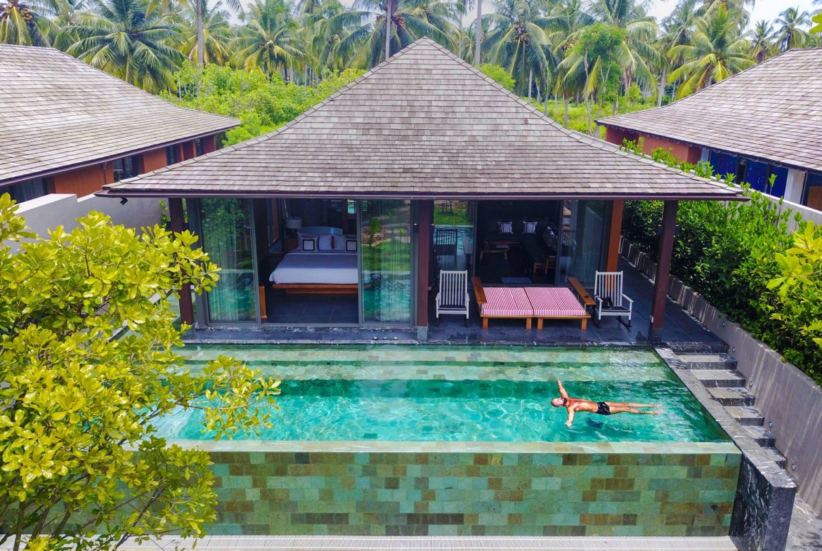 The Luxury Pool Villa balances the style and hospitality of an intimate hotel with space and comfort expected of a luxury residence. The Luxury Pool Villa rests in the heart of the enclave and features a private pool wrapped around the master bedroom, overlooking the tranquil water gardens.