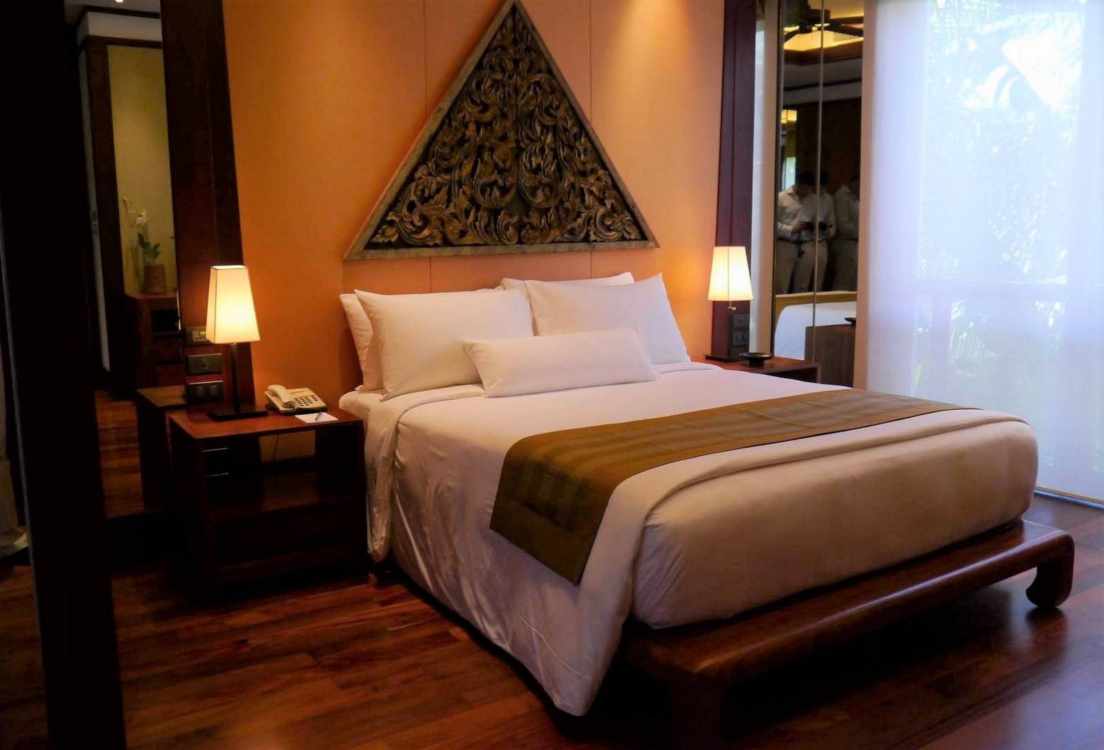 The apartment is tastefully finished with Jim Thompson silk wall panels, heavy light teak furniture and a beautiful mix of Thai and Asian artifacts.