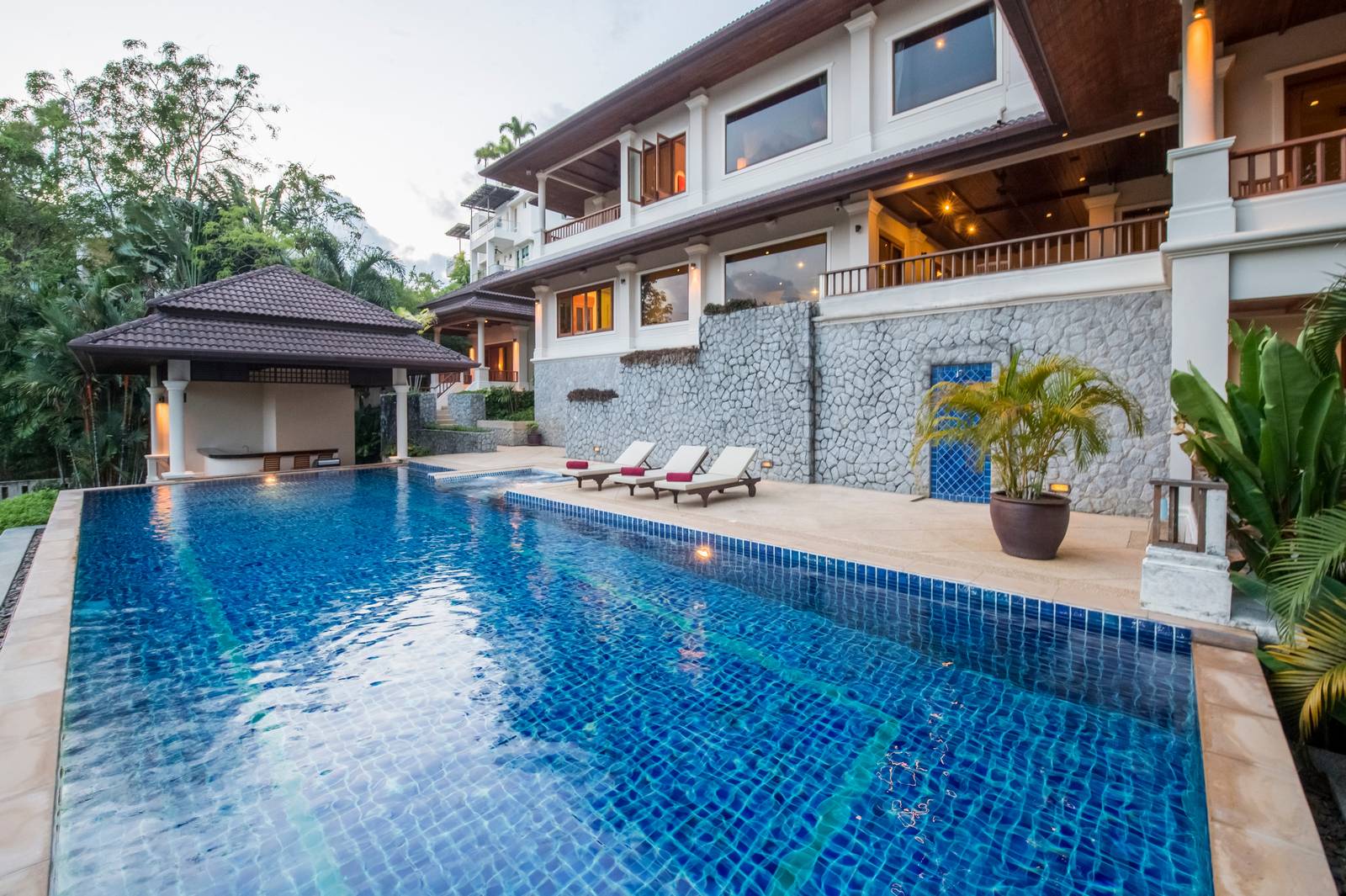 Consisting of five bedrooms and located only minutes to both the sandy Bangtao and Layan beaches, shopping, some of Phuket’s finest eating establishments and local Thai restaurants, shopping and spas.