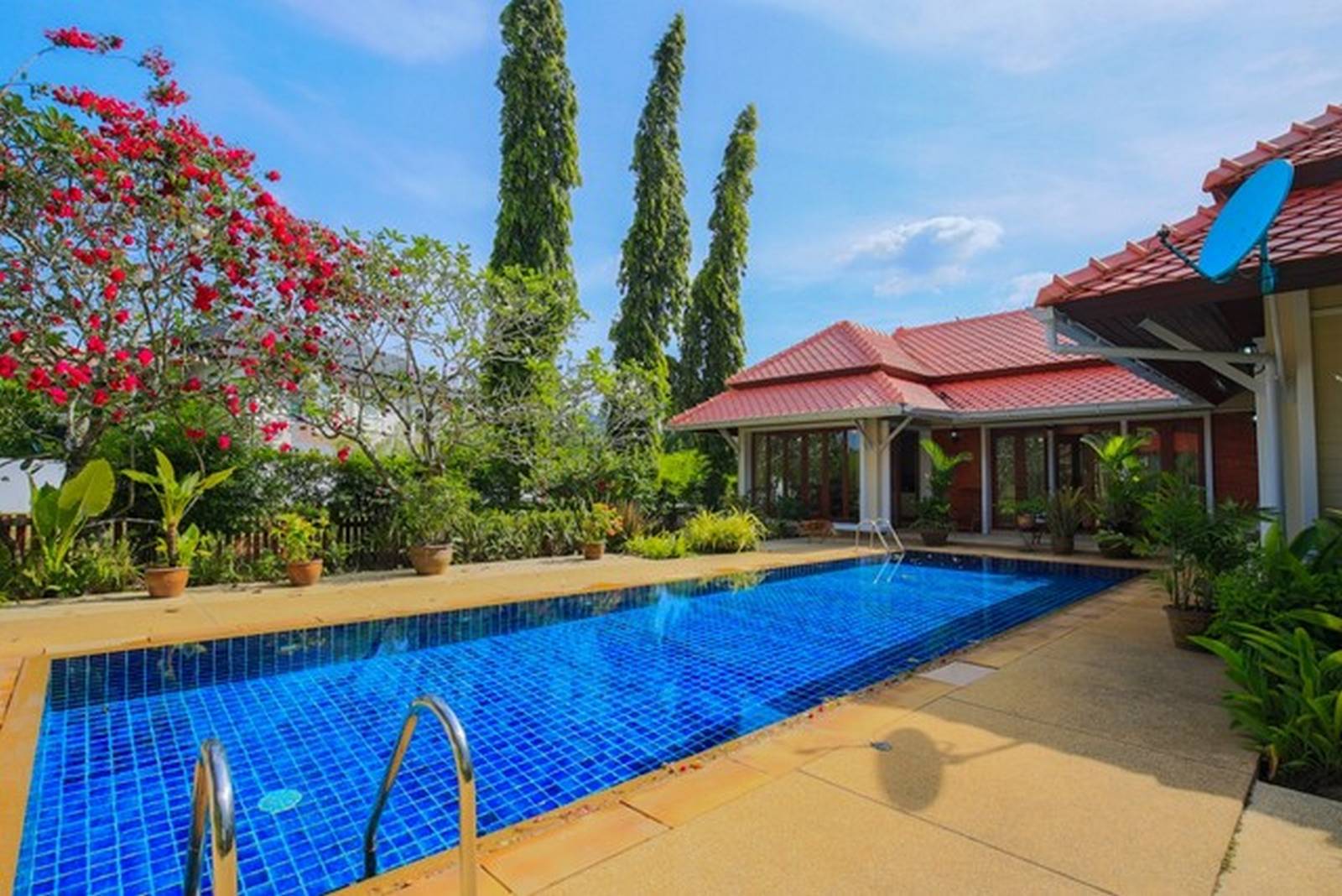 -This palatial and well designed house is Spacious Beautiful 3-Bed Laguna Golf View near Bangtao Beach. Excellent peaceful location within the Laguna Phuket complex. Nearby is a good selection of restaurants and shops at Cherngtalay, which is within 5 minutes drive or a complimentary shuttle bus getting around the entire Laguna complex and to Bangtao Beach is very convenient. Land Plot is 1,687 Sqm. In total, this house has 3 bedrooms, 3 bathrooms, toilet and full of furniture.