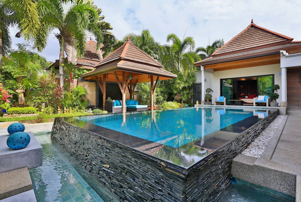 A luxury contemporary Asian Pool & Garden Villa set in a private gated estate of only 8 villas on the beautiful west coast of Phuket, just a stroll to the soothing panoramas of the glistening Andaman sea and white sands of Bang Tao/Surin Beaches.